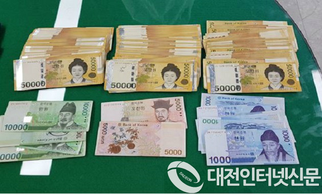 | ▲경찰이 압수한 대포통장및 otp 카드와 현금(사진-대전청) |