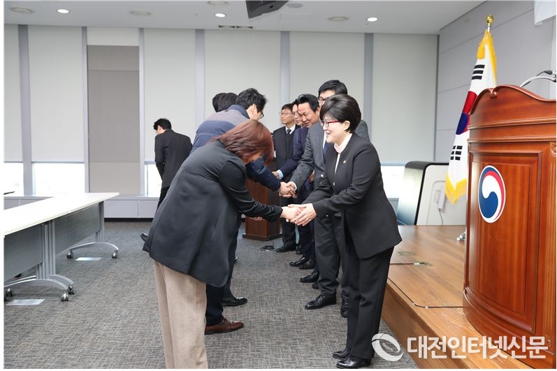 행정중심복합도시건설청 임직원들이 시무식 후 인사와 덕담을 나누고 있다(사진제공=행복청)
