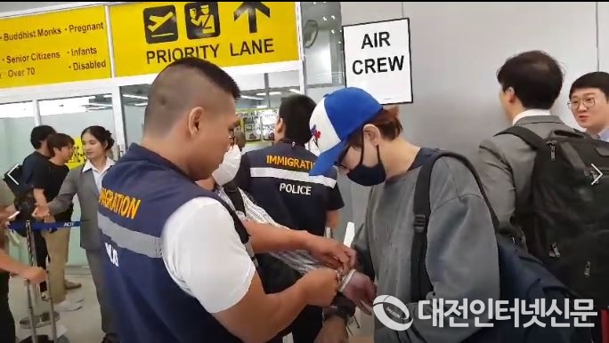 또한 지난 1. 8. 사이버수사팀장 경감 홍영선 등 2명은 태국 후에이깡 경찰서에서 A씨로부터 압수한 물건을 인수하고 1. 9. 방콕 수왓나품 공항에서 피의자 A씨를 인수하여 귀국하였다.