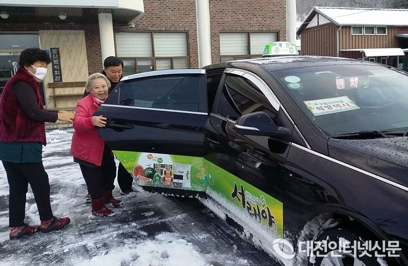 서천군이 관내 20세대 이상이 거주하는 마을 중 회관과 승강장 거리가 700m 이상인 마을 주민을 대상으로 운행 중인 100원 택시. [사진-서천군청]