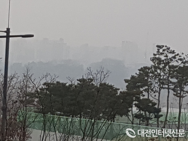 세종시청에서 바라본 정부세종청사 인근의 아파트가 희미하게 보이고 있다. [사진-대전인터넷신문]