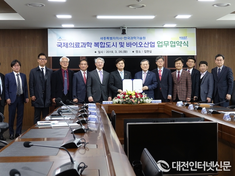 [대전 인터넷신문=세종/최요셉기자] 세종특별자치시와 KAIST간 바이오산업 및 국제의료과학 복합도시 구현을 위한 업무협약이 26일 세종시청에서 개최되었다.