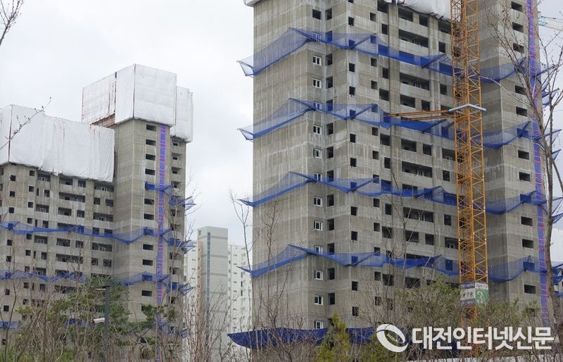 세종특별자치시 주택 미분양 신화가 계속 이어지고 있다. 사진은 세종시에 건설 중인 아파트 신축현장 전경. [사진-대전인터넷신문]