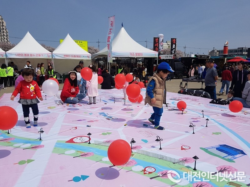 엄마랑 봄꽃놀이 나온 아기들도 체험 프로그램에 나섰다(사진-세종시청)