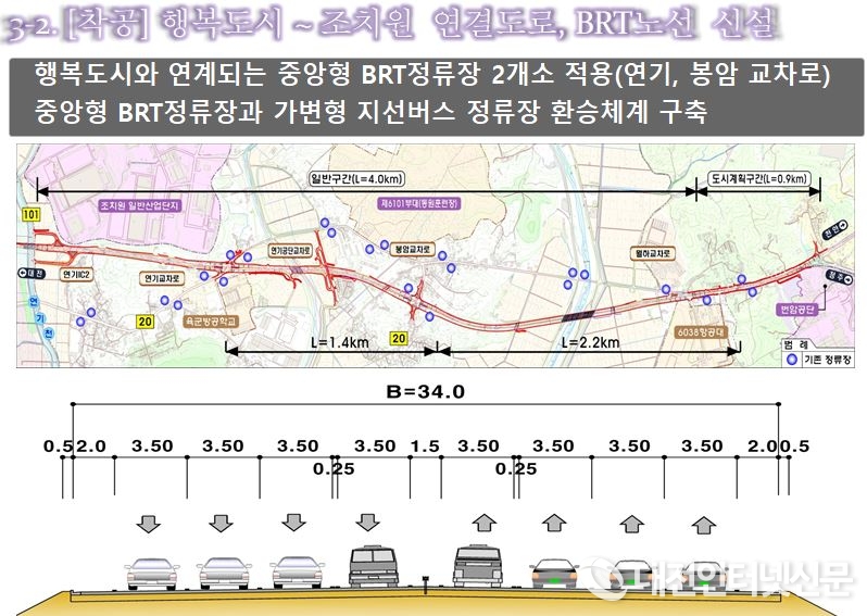 [대전인터넷신문=세종/최요셉기자] 행복도시와 조치원을 연결하는 국도1호선 확장사업이 5월에 착공하여 2022년 개통을 목표로 사업이 추진될 예정이다. 이 사업은 급격히 성장하는 행복도시와 조치원읍간의 교통량 처리를 위해 왕복 4차로를 6∼8차로로 확장하는 사업으로 행복도시에서 운영하고 있는 BRT와 연계되어 대중교통 활성화에 기여할 것으로 행복청은 기대하고 있다.
