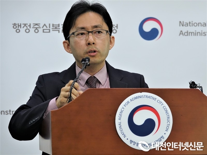 행정중심복합도시건설청(이하 행복청)이 총 2조 7천억을 투입 행복도시와 전국 주요 도시간 2시간 내외로 접근이 가능한 광역도로망 세부계획을 밝혔다. 사진은 (위) 이상철 기반시설국장과, (아래) 홍순민 광역도로 과장이 17일 행복청 정례브리핑을 통해 광역도로 계획을 브리핑하는 모습. [사진-대전인터넷신문]