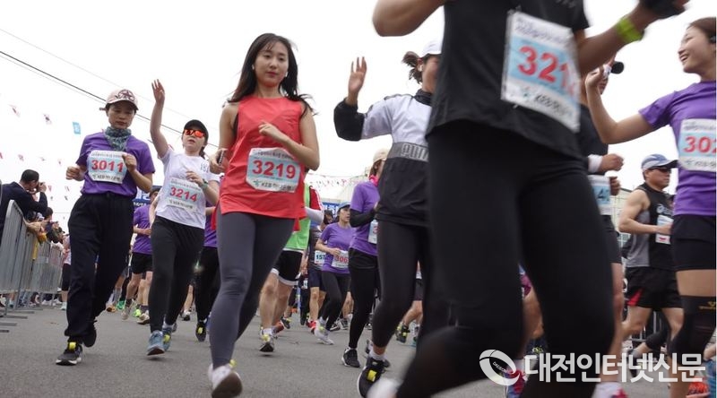 전국에서 모인 2천명이 넘는 마라토너들의 출발 전 모습이 장관을 이루고 있다. [사진-대전인터넷신문]