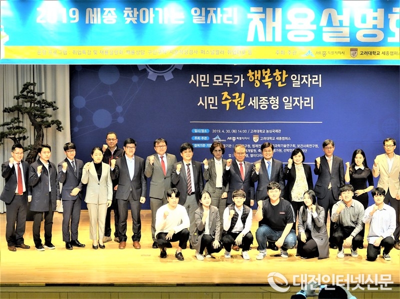 [대전인터넷신문=세종/최요셉기자] 세종특별자치시가 30일 14시 고려대학교 세종캠퍼스 농심국제관에서 관내 대학생과 취업준비생 300여 명이 참가한 가운데 ‘세종 찾아가는 일자리 채용설명회’를 개최하였다.