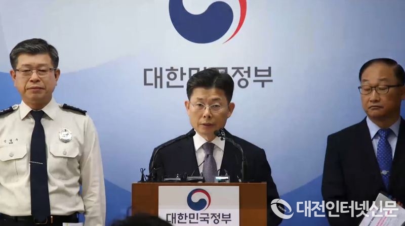 행정안전부 허언욱 안전정책실장과 신열우 소방청 차장이 30일 ‘범정부 화재안전 특별대책’을 발표하고 있다. [사진-행정안전부]