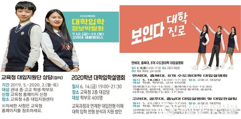 세종시교육청이 5월부터 대입지원단 상시 상담을 진행하고, 6월 14일부터 20년도 대학입학설명회를 개최한다. [포스터-세종시교육청 제공]