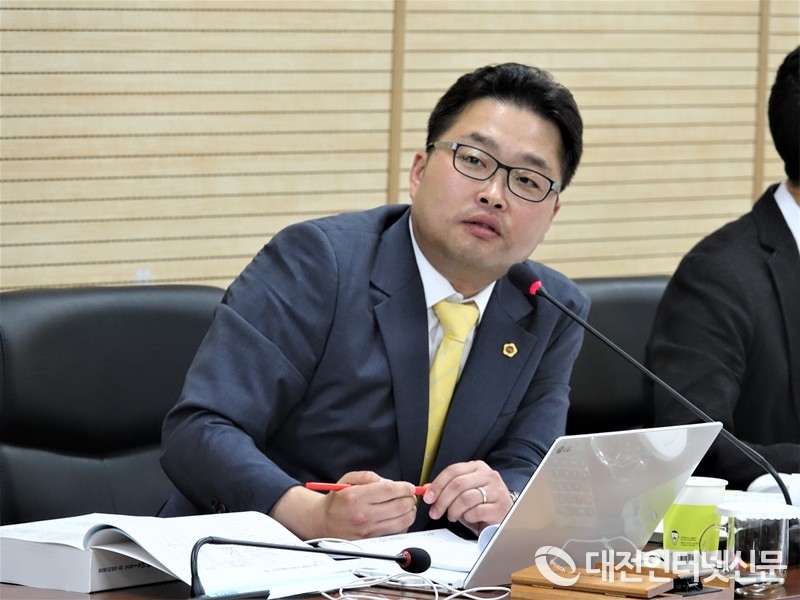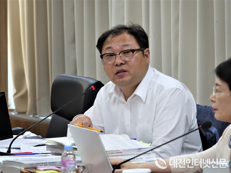 박성수 의원이 행정복지위원회 2019년도 행정사무감사에서 관계공무원을 상대로 질문하고 있다. [사진-대전인터넷신문]