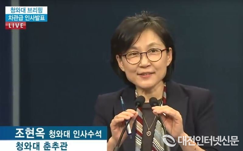 청와대 조현옥 인사수석이 28일 춘추관에서 신임 김현준 국세청장 지명에 대한 인사를 발표하고 있다. [사진-청와대]