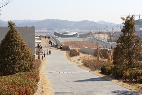 정부세종청사 옥상은 성곽둘레를 돌며 성 안팎의 경치를 구경하는 전통놀이인 `순성놀이´에서 착안해 성벽모양으로 지어졌다.