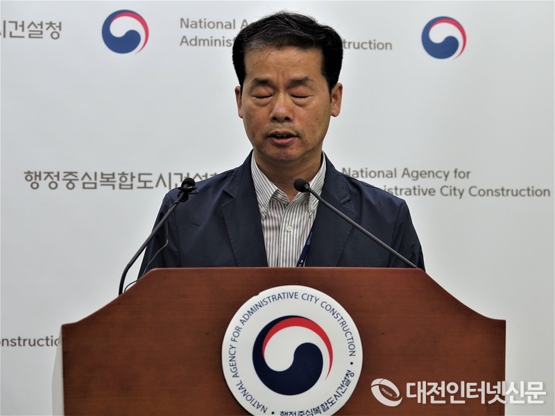 권진섭 공공건축과장은 행복청이 추진하는 단지 통합설게 및 건립에 대한 계획을 브리핑하는 모습.[사진-대전인터넷신문]