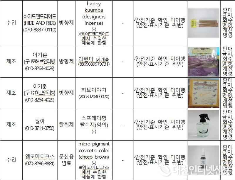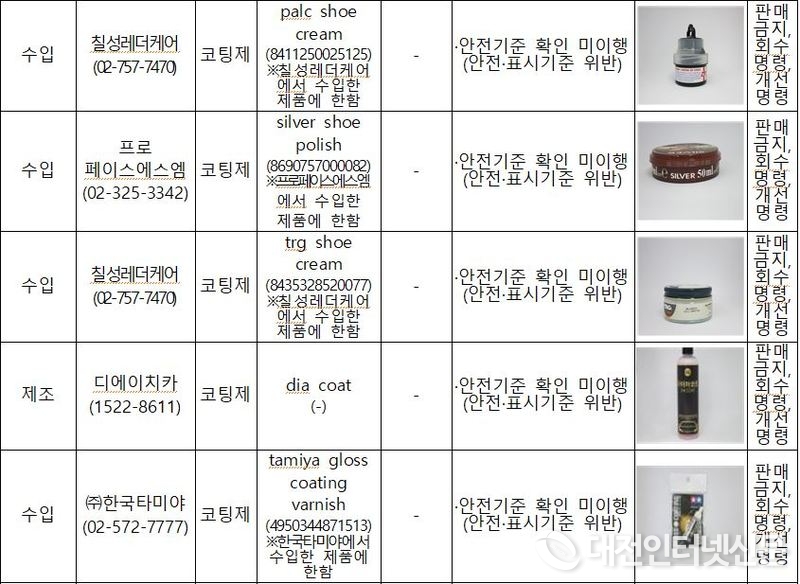 [대전인터넷신문=세종/최대열 기자] 환경부는 유해물질 함유기준을 초과했거나, 안전기준 확인․신고를 하지 않고 시중에 유통된 18개 업체 23개 제품을 적발하여 6월 24일 회수 조치한다고 밝혔다.