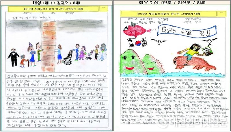 교육부가 주최하고 재외동포교육진흥재단이 주관한 제1회 재외동포 어린이 한국어 그림일기대회」는 5년 이상 해외 거주의 전 세계 44개국 555명 어린이가 한국어·한국문화·역사를 배우며 느낀 점 등을 그림일기 형식으로 작성하여 대회에 참여하였다.