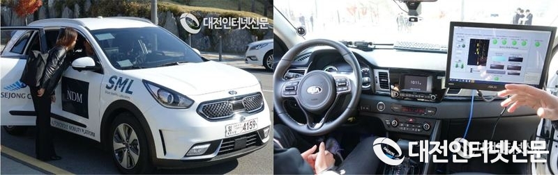 자율협력주행 스마트인프라(C-ITS) 국토부 제공사진은 18년 10월 세종시에서 개최된 자율주행차량 시승식과 자율주행차 내부 모습. [사진-대전인터넷신문 자료]