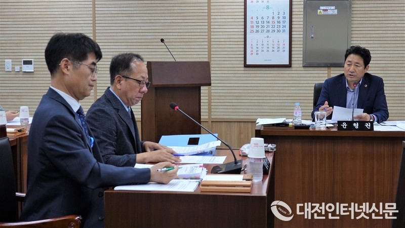 세종특별자치시의회 윤형권(교육안전위원회)이 대표 발의한 세종특별자치시교육청 일본 전범 기업 제품 공동구매 제한 및 역사 바로 알기 교육에 관한 조례안 예고 사항에 반대 의견을 개진했던 세종시교육청 담당국장을 향해 날 선 지적을 하는 윤 의원. [사진-대전인터넷신문]