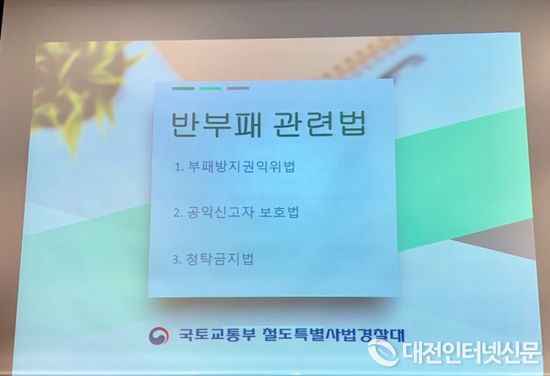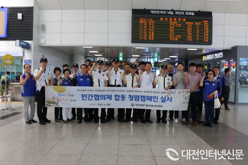 이어 대전역 열차를 이용하는 승객들을 대상으로 추석을 맞이하여 부패신고 활성화 및 공익신고자 보호 제도와 대국민 교통안전 홍보를 위한 청렴 휴대폰 받침대, 청렴 뺏지, 일회용 청렴 밴드 등 홍보 물품 및 공익신고자 보호 제도 포스터를 나눠주며 대국민 청렴 실천 및 교통안전 홍보활동도 병행 실시했다.