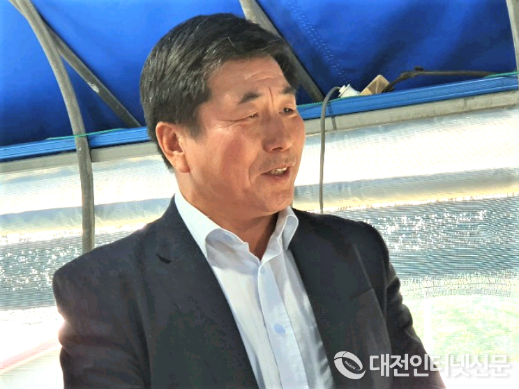 27일 세종시기자협의회 워크숍이 열리는 송조농장을 방문 청양군의 공격적 선제적 살처분 계획을 설명하는 김기준 청양부군수. [사진-세종시 기자협의회]