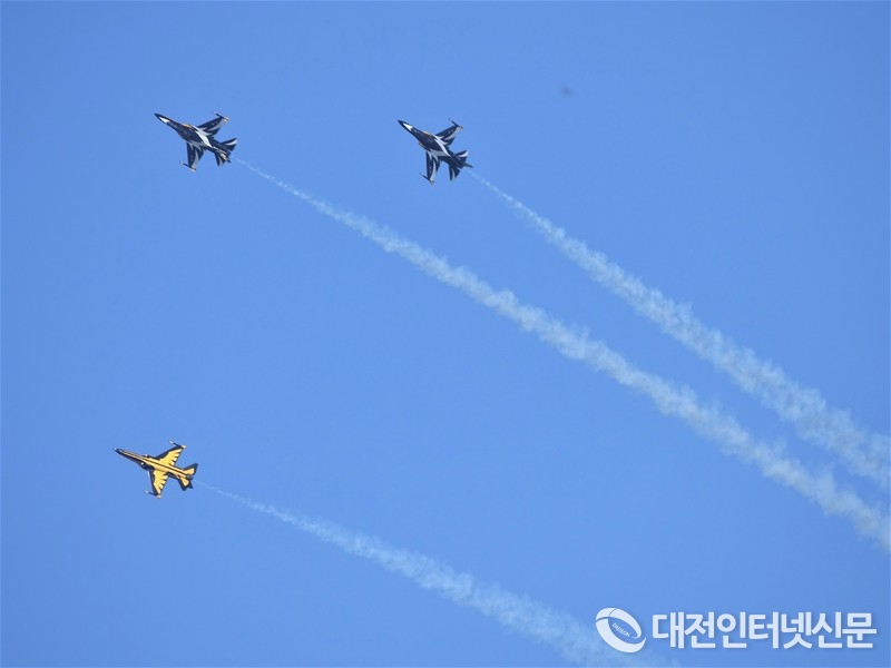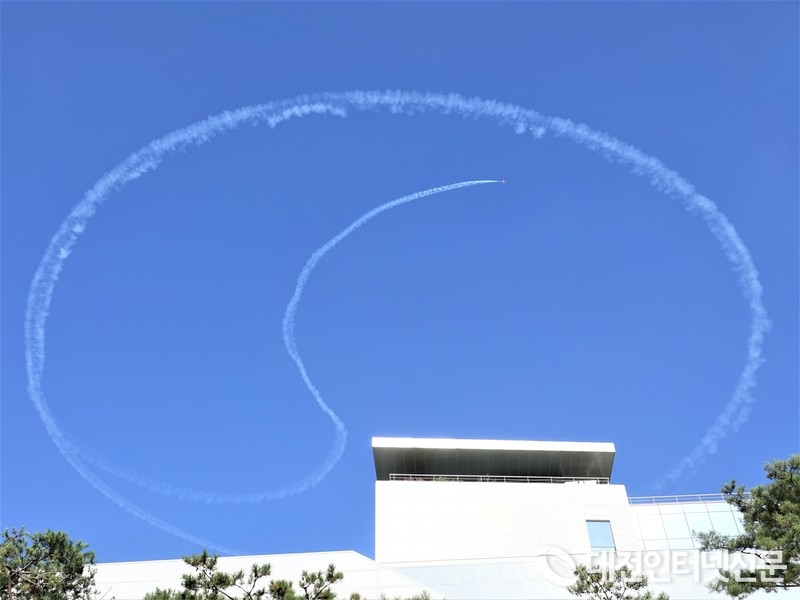 [대전인터넷신문=세종/박향선기자] 일곱 번째 세종축제 마지막 날이자 한글날을 맞은 호수공원 하늘에는 대한민국 공군의 화려한 에어쇼가 펼쳐지며 호수공원에 운집한 1만여 명의 시선을 사로잡았다.