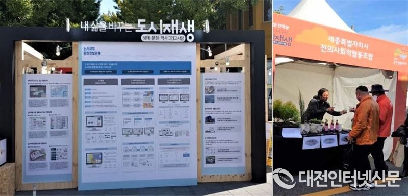 세종시는 세종시의 도시 재생 홍보와 정보교류 및 소통을 위한 부스를 운영하는 동시에 조치원 동네방네 협동조합의 복숭아 수제 맥주 시음ㆍ판매와 전의 사회적 협동조합의 조경수 전시 및 지역특산물을 판매하는 장터 부스 2개를 운영하고, 특히 주민참여 경진대회에 전의 사회적 협동조합팀 6명이 참가 전통과 문화, 풍경으로 그린 전의 도시 재생 뉴딜 사업의 탄생ㆍ성장ㆍ성숙 과정을 공유할 예정이다. 참고로 세종시는 17년 왕성리팀이, 18년 상리팀이 주민경진대회에 참가 각 최우수상을 받은 바 있다.