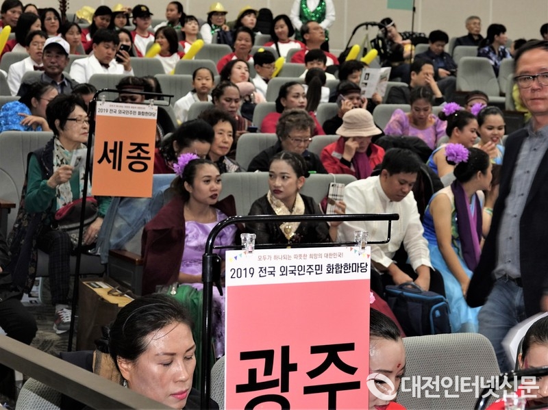 이들은 ‘2019년 전국 외국인주민 화합한마당 행사’에 참가하기 위해 세종시를 방문한 외국인 주민들로 자신들이 거주하는 지역을 대표하여 전통무용, 춤, 합창, 댄스 등의 경연 참석차 방문한 한국거주 외국인들이다.