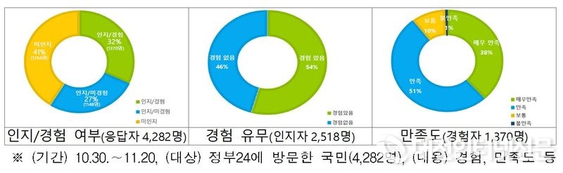 이에 앞서 ‘공공자원 개방·공유 서비스’에 관한 국민 인식을 알아보기 위해 자체 실시한 대국민 설문조사에 따르면 서비스를 알고 있는 국민은 전체의 59%를 차지했으며, 경험자의 90%가 만족한 것으로 나타났다.