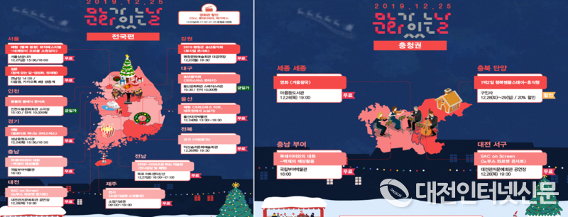 [대전인터넷신문=세종/박향선기자] 국민이 일상에서 문화를 더욱 쉽게 접할 수 있도록 제정된 매달 마지막 수요일에 개최되는 문화행사가 이번 달은 성탄절과 맞물려 전국에서 1,541개의 다채로운 문화행사가 열린다.