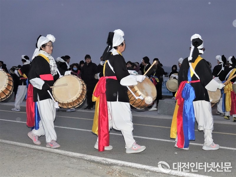 연서면 풍물대가 동이 트기 직전 분위기를 고조시키는 공연을……. [사진-대전인터넷신문]