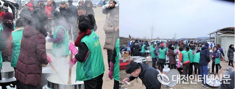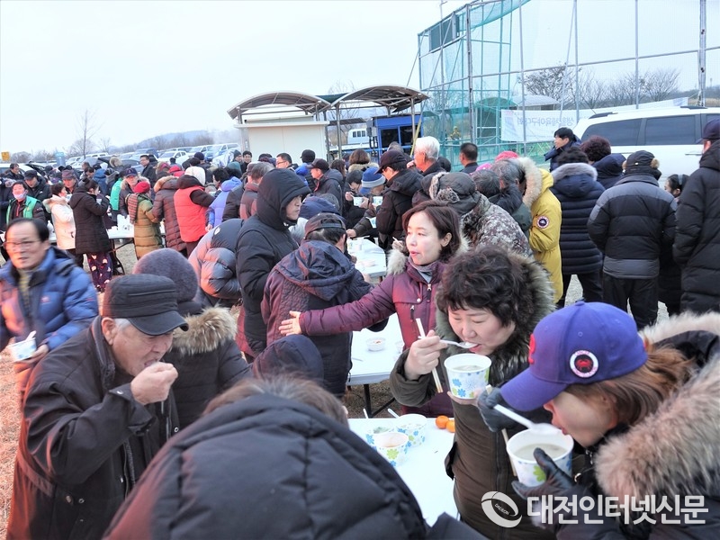 떡국 한 그릇 드시면 나이도 한 살 먹는다는데도 맛나게 떡국을 드시는 어르신과 주민들. [사진-대전인터넷신문]