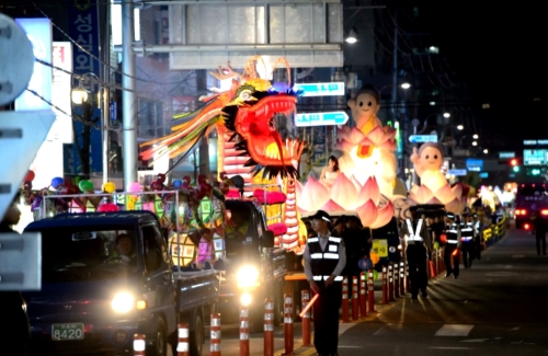 (사진설명:▲불기 2558년 부처님 오신 날을 맞아 세월호 침몰 사고 희생자의 영령을 위로하는 위령제가 26일 오후 6시 30분 조치원여자중학교에서 봉행된다. 사진은 지난해 조치원읍 일원에서 열린 봉축행사 자료사진.)
