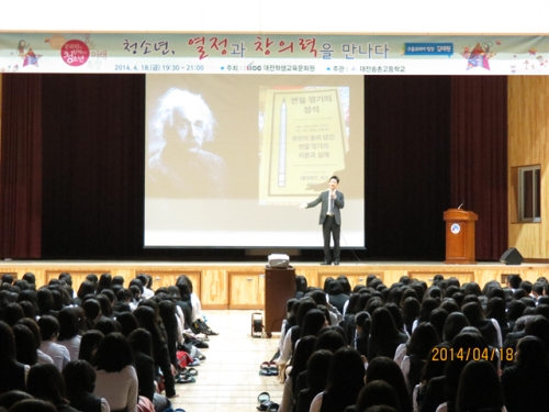 대전학생교육문화원(원장 김동엽)은 7일(목) 오후 1시 우송고 강당에서 3학년 학생들을 대상으로 `채용‧대입‧학습 트렌드의 변화´ 주제로 학교로 찾아가는 `청소년 꿈 & 미래 특강´을 실시한다고 밝혔다.