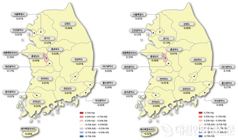 [대전인터넷신문=세종/최요셉기자] 세종특별자치시 아파트 매매가격과 전세가격이 각각 상승세를 이어가고 있다. 특히, 매매가격은 지난주 대비 상승폭은 소폭 하락했지만 지난주에 이어 이번주도 전국에서 가장 높은 상승률을 기록했다.
