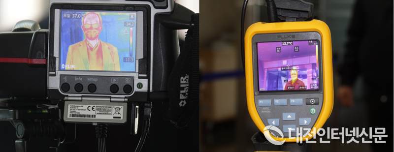 26일 설치된 열화상 카메라가 출입자에 대한 발열을 체크하고 있다. [사진-대전인터넷신문]