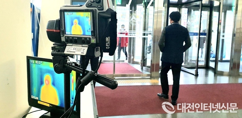 세종시가 지상 출입문에 열화상카메라, 열감지기, 적외선체온계를 동시에 운영해 모든 출입자들의 발열상태를 체크하고, 마스크 미착용자에 대해서는 출입을 원칙적으로 차단할 예정이다.(사진-세종시)