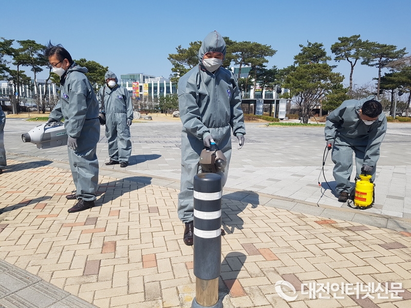 [대전인터넷신문=세종/최대열기자] 이춘희 세종시장이 23일 오전 세종시 주민자치협의회 전·현직 위원장 15명과 함께 관내 버스정류장, 어린이 놀이터 등에 대한 방역을 실시하였다.