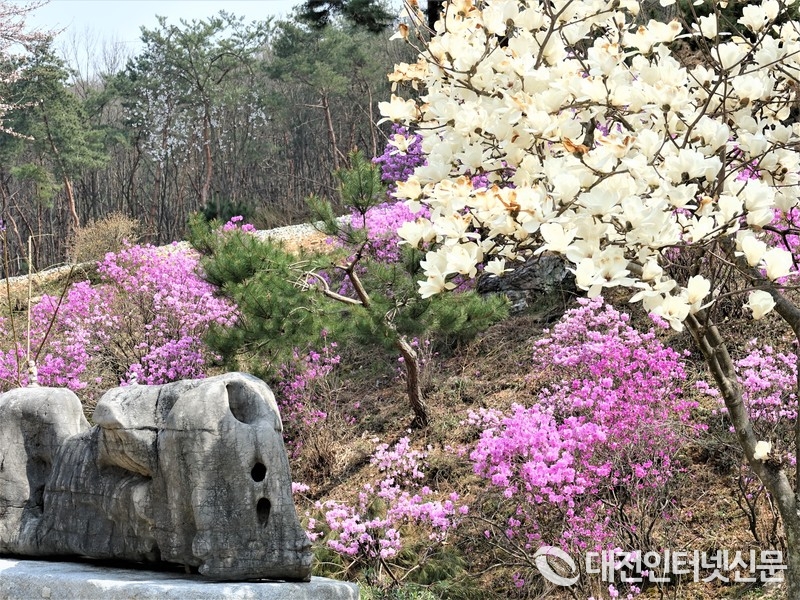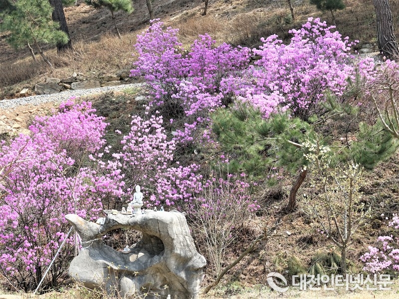 만개한 진달래의 자태가 주변 풍경과 어우러져 한 폭의 수채화를 연상케 하고 있다. [사진-대전인터넷신문]