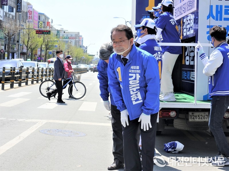 세종시에서 나고 자라며 정무부시장을 지낸 자신의 지지를 호소하는 강준현 후보. [사진-대전인터넷신문][사진-대전인터넷신문][사진-대전인터넷신문][사진-대전인터넷신문][사진-대전인터넷신문][사진-대전인터넷신문]