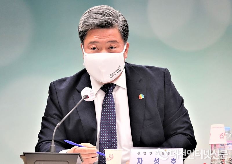 세종시의회 산업건설위원회 차성호 위원장이 지역 건설업체와 관게기관이 참석한 가운데 모두발언을 하고 있다. [사진-대전인터넷신문]