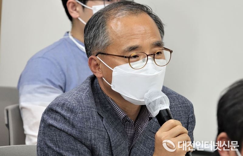 흥덕산업 김윤회 흥덕산업 대표가 지역 경기 활성화 차원의 현실성 있는 대안 마련을 촉구하는 모습. [사진-대전인터넷신문]