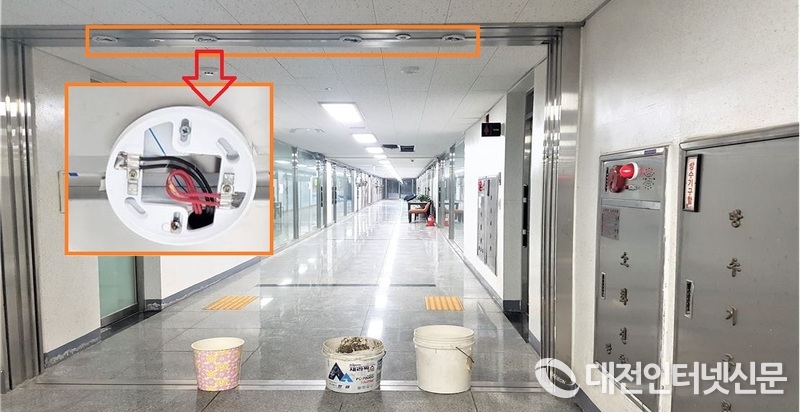 특히 세종시청 인근의 상가 지하에서는 화재 발생 경보기를 타고 누수가 진행되면서 자칫 화재 발생 시 화재를 알리는 중요한 경보기가 작동 불능으로 대형 사고를 유발할 수 있음에도 바닥에 누수를 받기 위한 물통만 덩그러니 놓인 체 안전불감증 만연의 단면을 적나라하게 보여주며 안전의식 고취에 대한 제도적 뒷받침이 절실히 요구되고 있다.