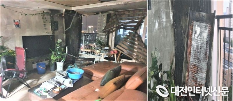 7월 30일 세종시 새롬동 새뜸마을 아파트 에어컨 화재 모습. [사진-세종소방본부]
