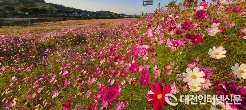 [대전인터넷신문=충남/최요셉 기자] 금산군이 제원 금강둔치, 남일 봉황천, 금산읍 환경사업소 등 천변에 조성중인 가을꽃 단지에 코스모스가 만개했다고 7일 밝혔다.