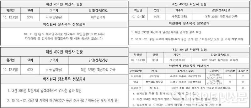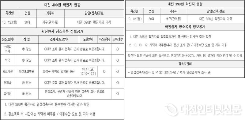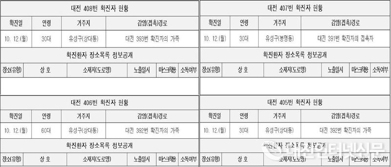 ‘대전시’ 코로나19 가족 간 전염 심각하다, 12일 확진자 10명 중 9명이 가족 간 접촉으로 인한 확진