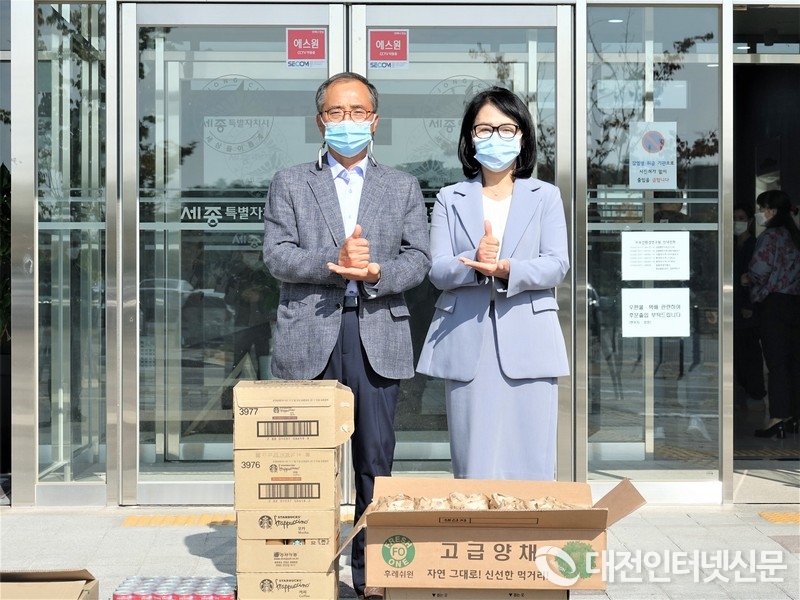 이날 세종보건환경연구원 격려는 관내 연동면에서 보도블록 등을 생산하는 향토기업 김윤회 흥덕산업 대표와 대평동에서 신축상가를 건설 중인 대림건설 조성환 소장이 코로나 정국 속에 일반인들은 잘 모르는 보건환경연구원의 수고와 노력, 성과를 인지하고 마련된 자리로 받는 사람은 자긍심을, 기부하는 사람 또한 나눔의 기쁨을 만끽하며 함께하는 자리로 본보기가 되고 있다.