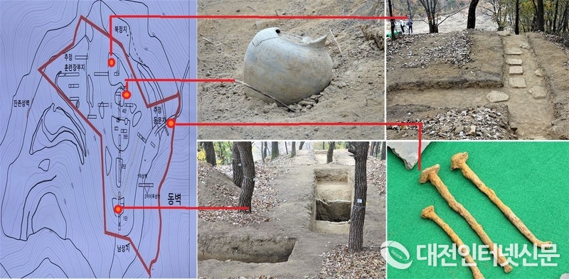 1차 시굴조사 지점과 발굴된 유물. [사진-대전인터넷신문]