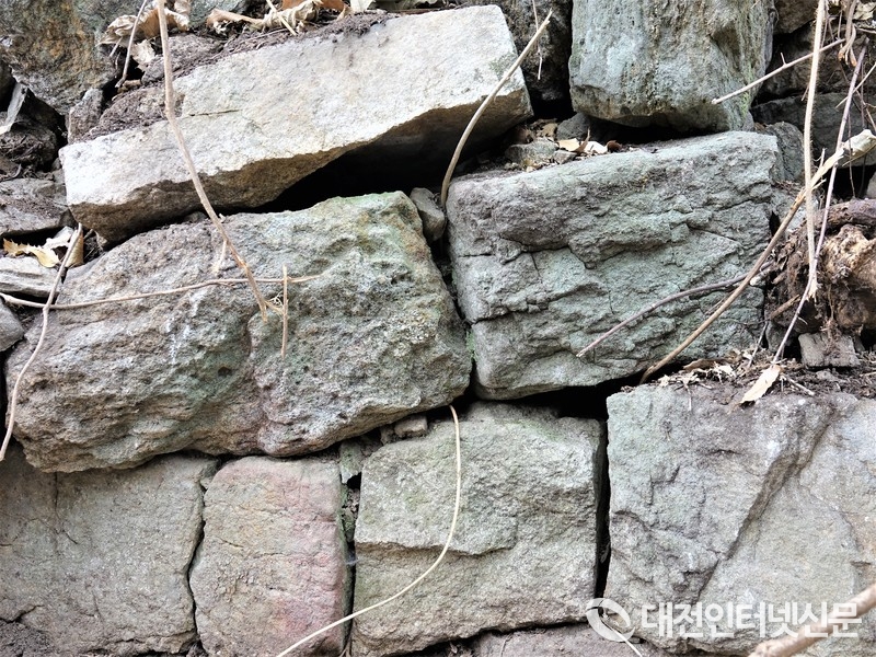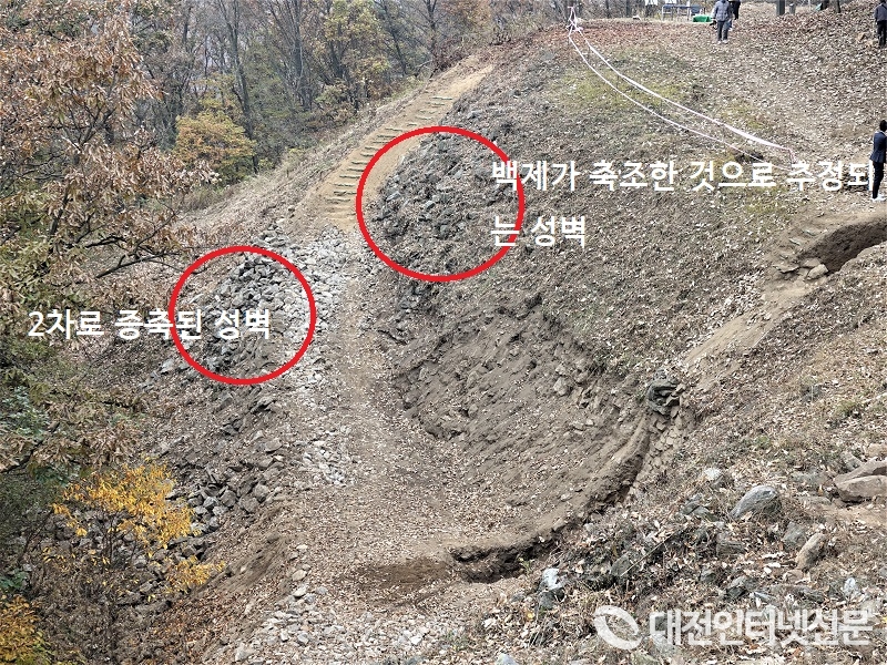 2차례 이상 고쳐 쌓은 흔적이 당시의 백제와 신라의 치열한 격전이 있었음을 추정케하고 있다. [사진-대전인터넷신문]