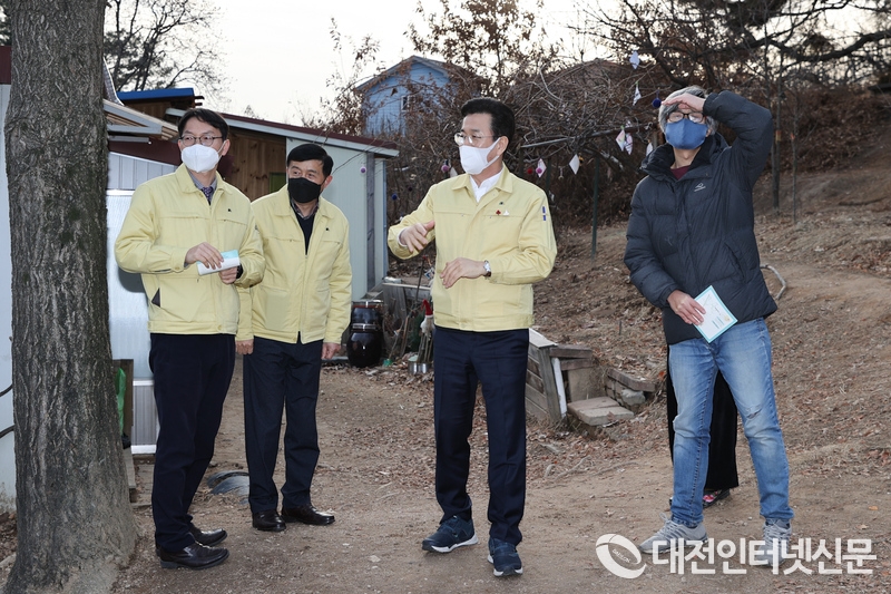 허태정 대전시장이 유성구 소재 미인가 대안‧종교 집단시설 현장 점검에 나섰다. (사진-대전시)