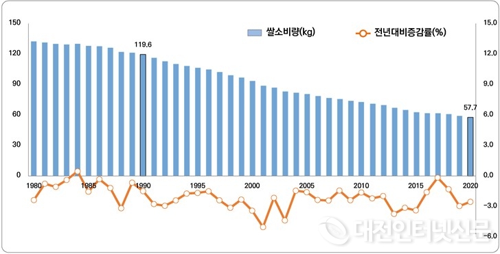 [대전인터넷신문=대전/박세종 기자] 팬데믹으로 몸살을 앓았던 지난해 쌀 소비마저 줄었다.